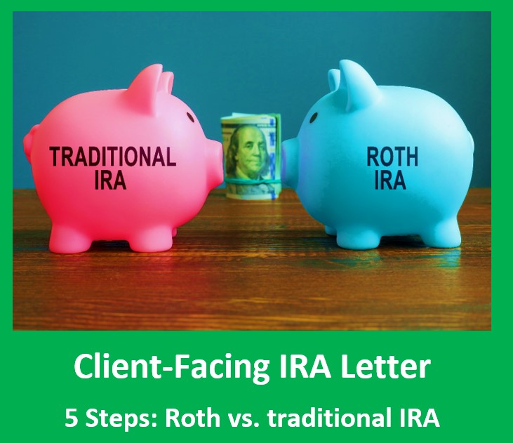 Use this letter to help clients choose between a traditional IRA contribution and a Roth IRA contribution.