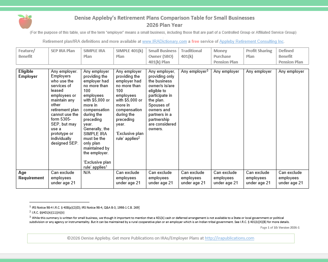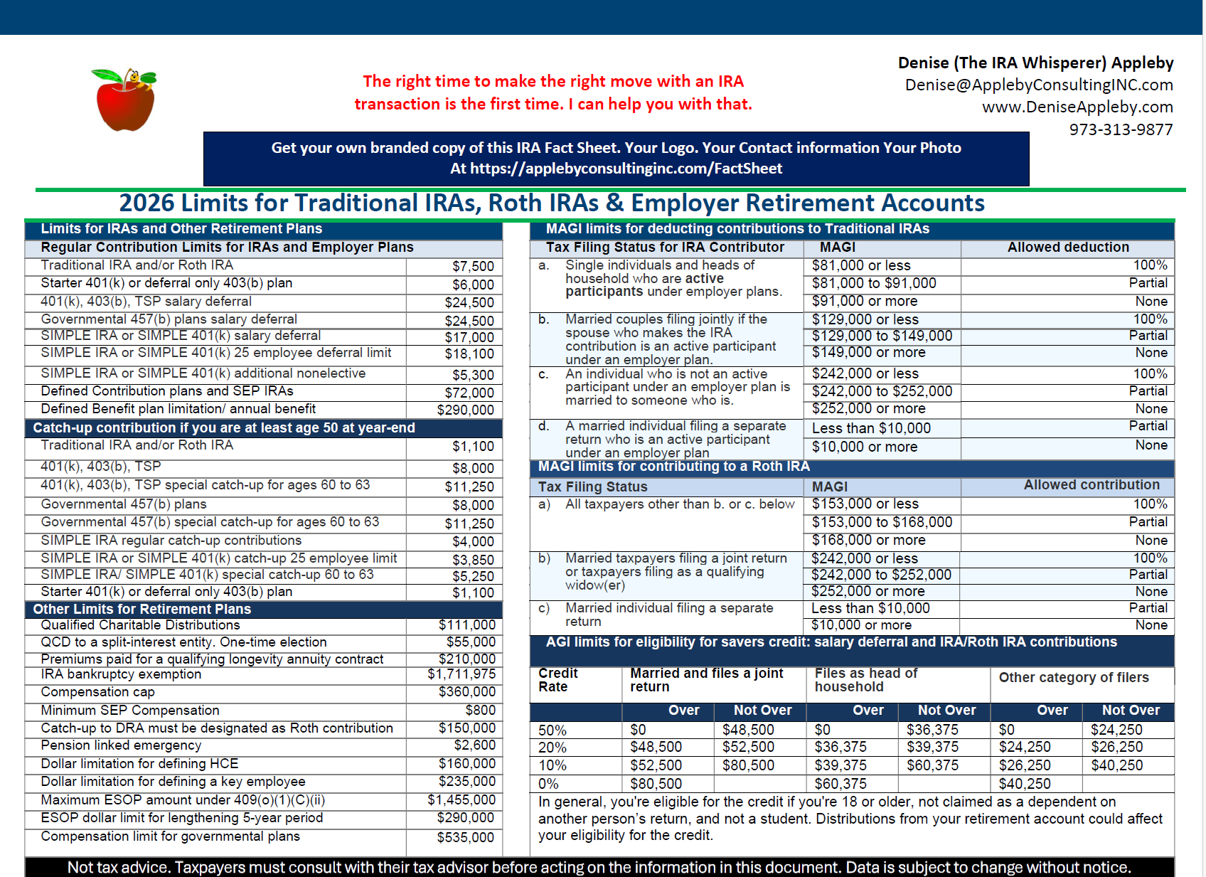 Welcome. Please download the FREE IRA Cheat sheets below. And, while you are here, please buy the 2024 version of the IRA Quick Reference Guide book.